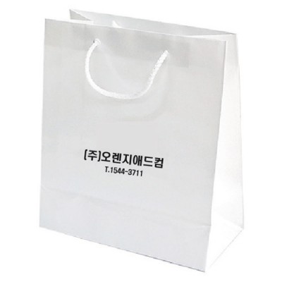 | 기타사항 | •기본수량 100개 •규격 : 220x110x270(mm) •재질 :140g AT/흰나일론끈 •인쇄 : 백색/유광코팅 •상호박인쇄가능(금,은,먹,적,청박) |