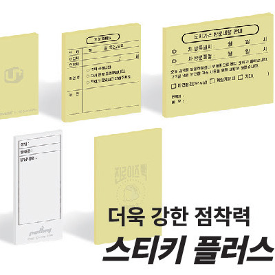 | 기타사항 | •70 x 76 •100매 / 노랑, 백색 •기본수량 500개 |