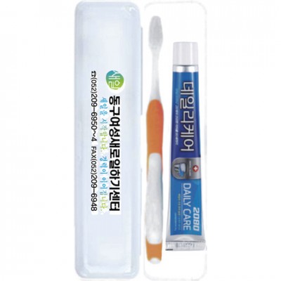 | 기타사항 | (종이케이스별도 100원) •Size : 200×45×30㎜ •2080치약50g,국산칫솔 ※구성품 교체 가능 / 칼라인쇄시 100원추가 |